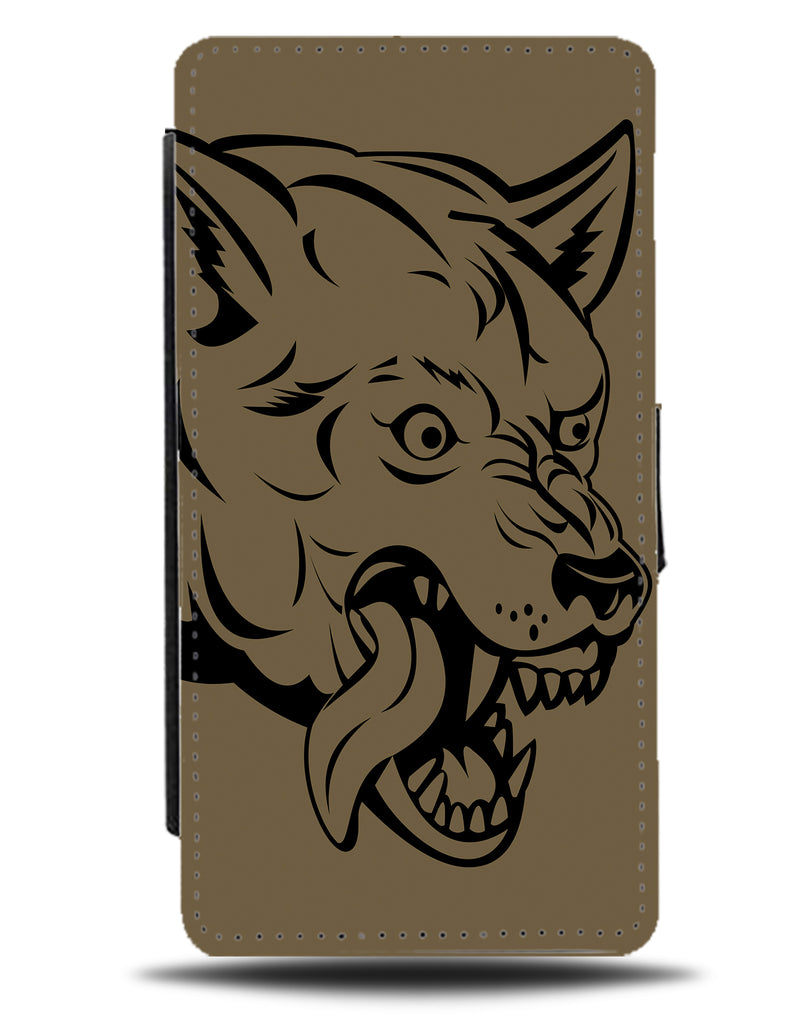 Angry Wolf Head Brown Flip Wallet Phone Case Face Anger Furious Grey Wolf's Wolves 744