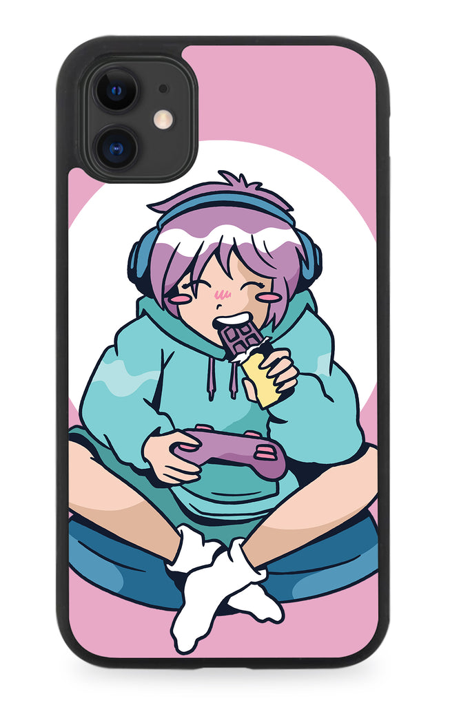 Anime Gamer Girl Eating Japanese Candy Rubber Phone Case Gaming Chick EGirl M343
