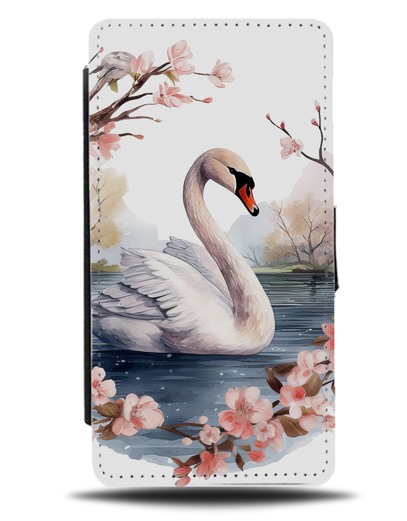 Artistic Swan Design Flip Wallet Case Swans Art Swimming Rose Gold Leaves DQ50