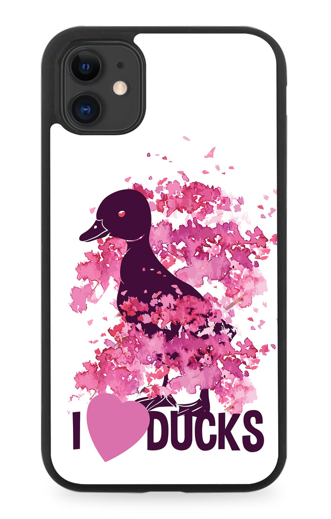 I Love Ducks Flip Wallet Phone Case Duck Oil Painting Flowers Floral Pink E379