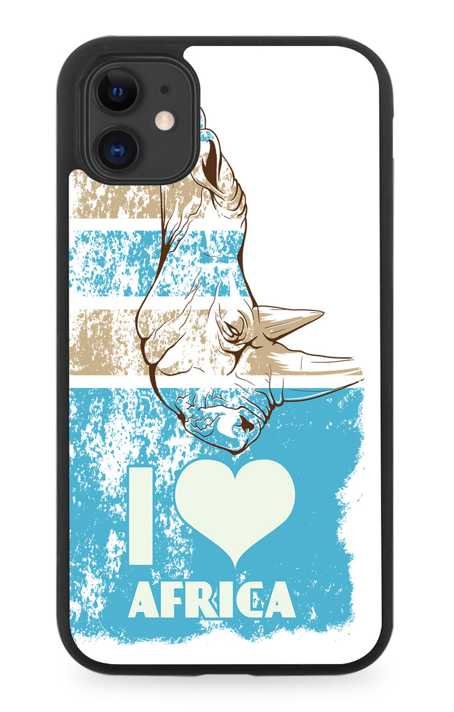 I Love Africa Rubber Phone Case Faded Design Rhino Rhinos Face African E503