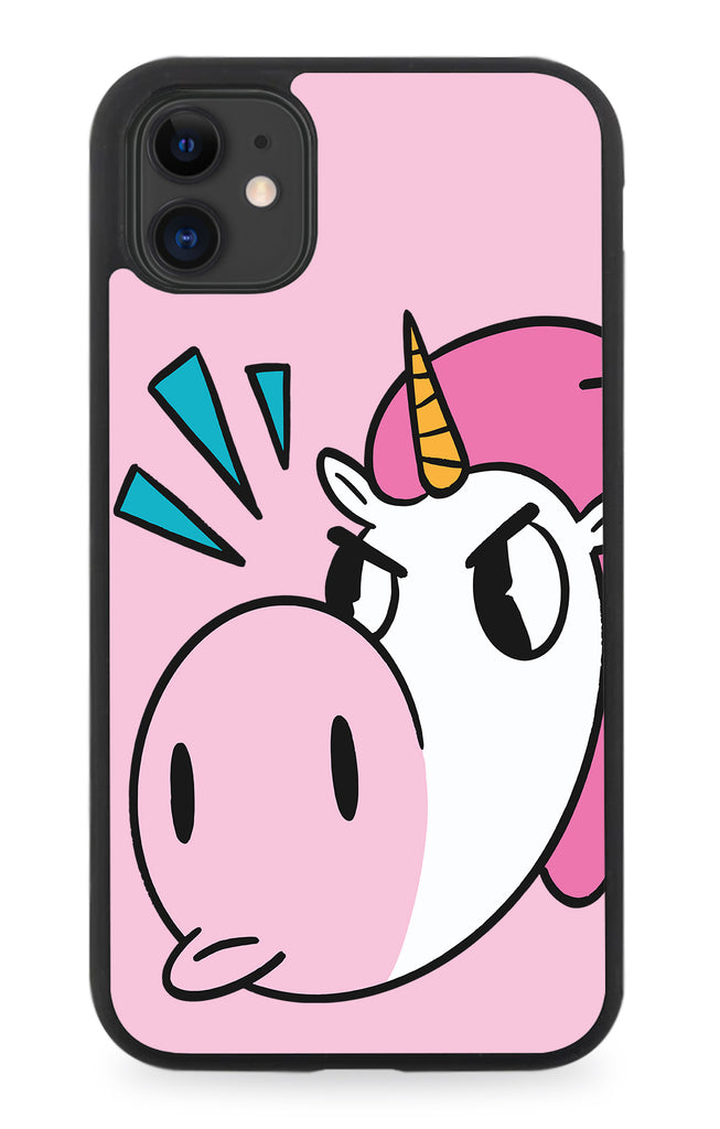 Japanese Unicorn Rubber Phone Case Pink Grumpy Sad Mad Angry Frown Face M039