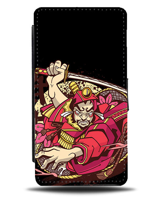 Japanese Warrior Flip Wallet Case Samurai Japan Fighter Silhouette Moon AU38