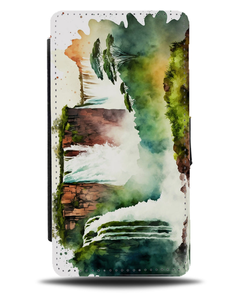 Jungle Waterfall Flip Wallet Phone Case Water Fall Falls Niagara Painting Art P253M