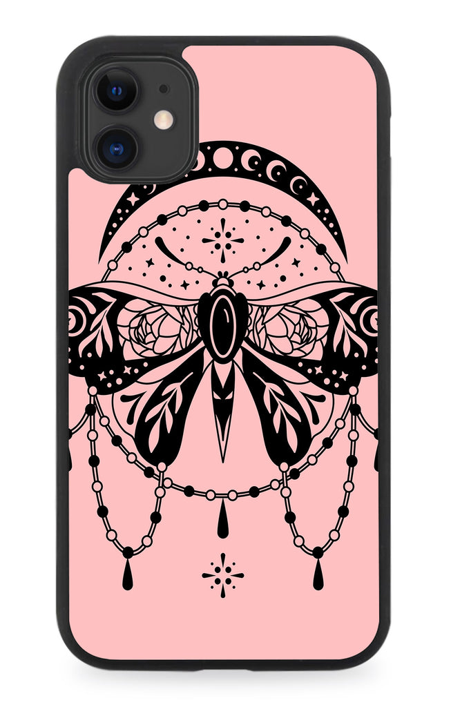Baby Pink Mystical Moth Moon Symbol Rubber Phone Case Moths Outline Wings P331E
