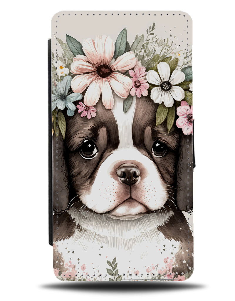 King Charles Spaniel In Flower Crown Flip Wallet Phone Case Watercolour Painting BJ35