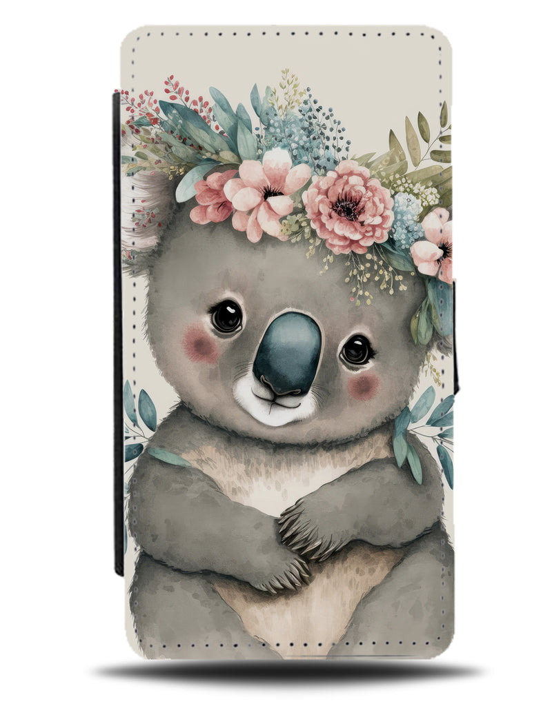 Koala Bear In Flower Crown Flip Wallet Case Floral Boho Koalas Bears Art BD14