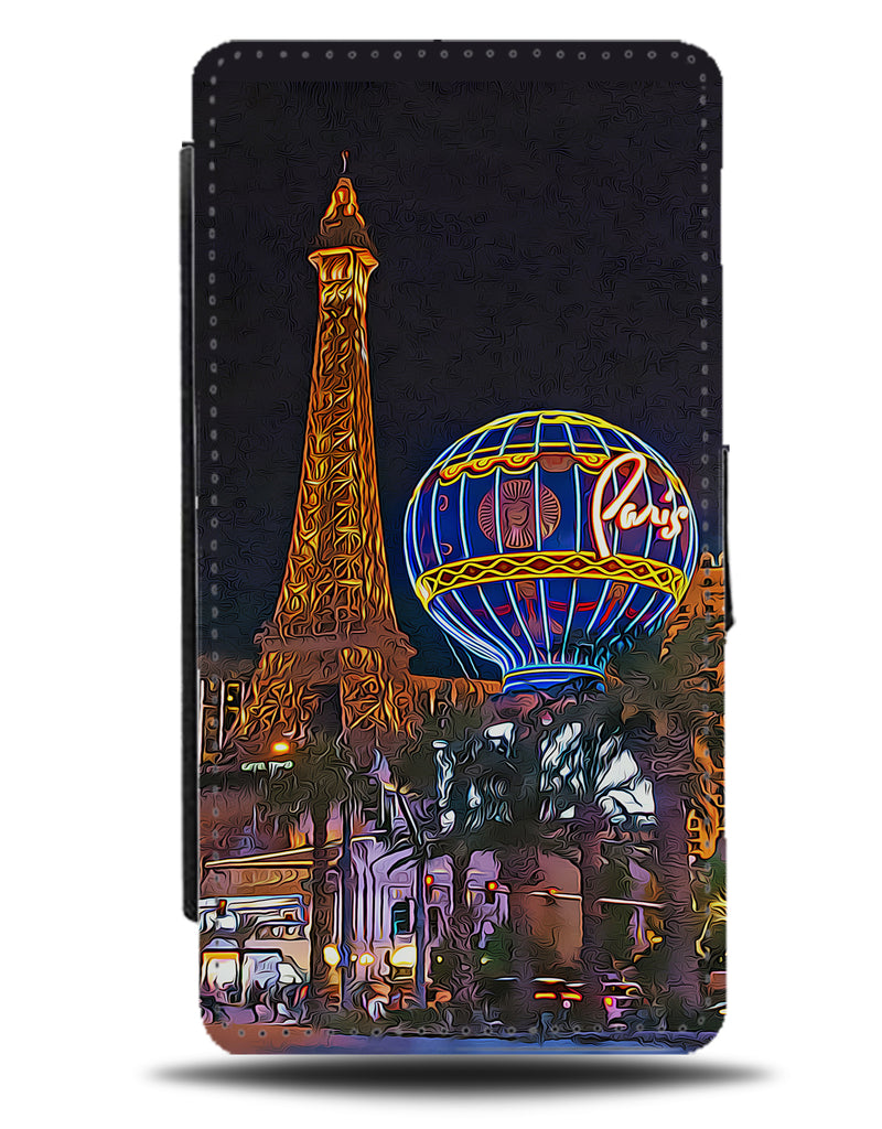Las Vegas At Night Flip Wallet Phone Case Strip Landmarks Eiffel Tower Picture BP40