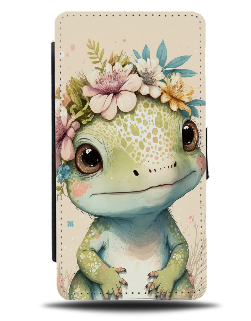 Lizard In Flower Crown Flip Wallet Phone Case Lizard's Watercolour Painting BJ57