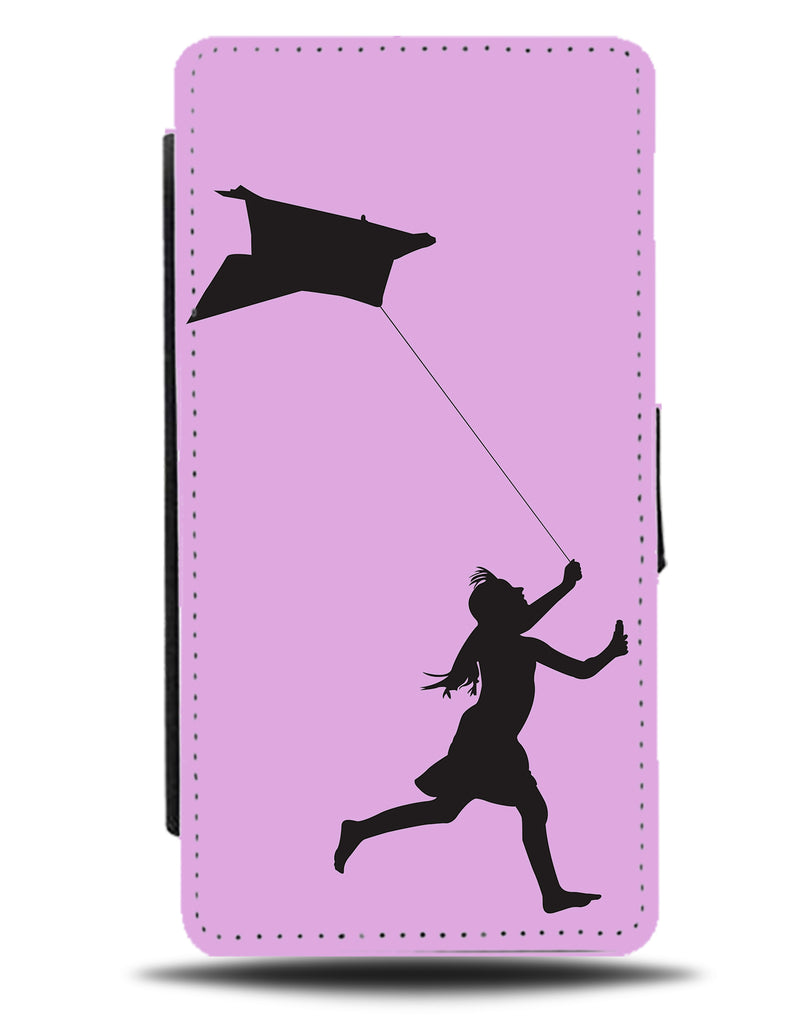 Little Girls Flying Her Kite Flip Wallet Phone Case Fly Your Kites Flyer Purple BK30