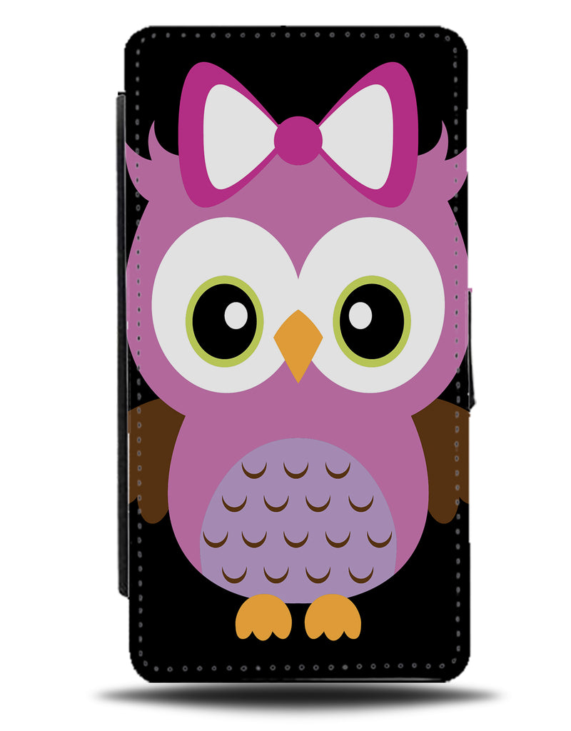 Little Girls Owl Flip Wallet Phone Case Pink Owls Birds Girl Hairbow Hair Bow BR46