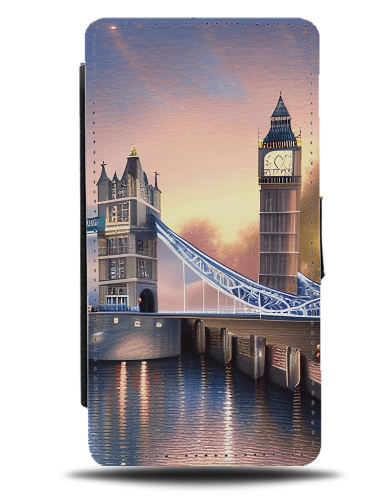 London Oil Painting Print Flip Wallet Phone Case Tower Bridge Big Ben City Of UK BW20