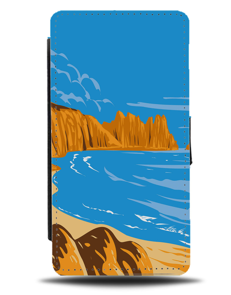 Logan Rock Cornwall Beach Flip Wallet Phone Case Cliff Cliffs English Coastline P325