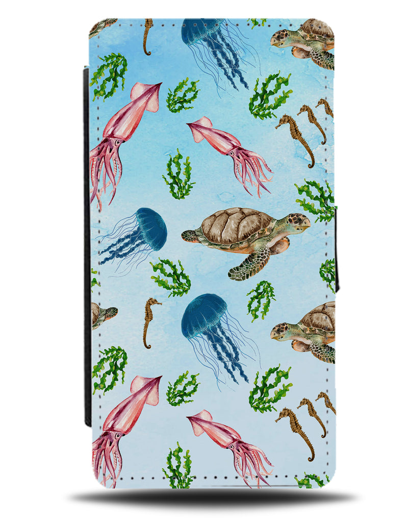 Marine Life Flip Wallet Phone Case Animals Creatures Ocean Sea Jellyfish Turtles BP50