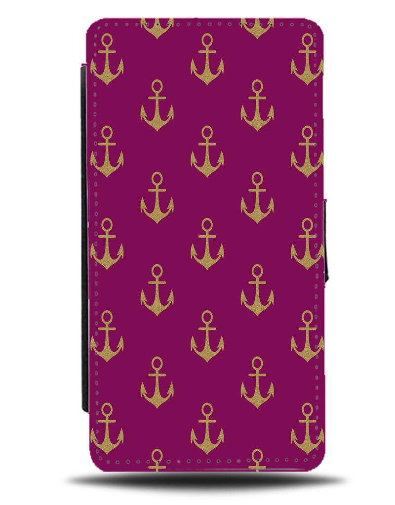Marroon Red And Gold Anchor Pattern Flip Wallet Phone Case Anchors Sailor Golden Q487F