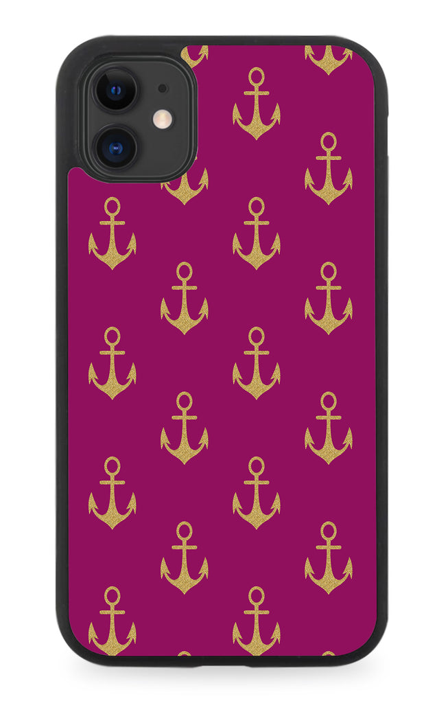 Marroon Red And Gold Anchor Pattern Rubber Phone Case Anchors Sailor Golden Q487F