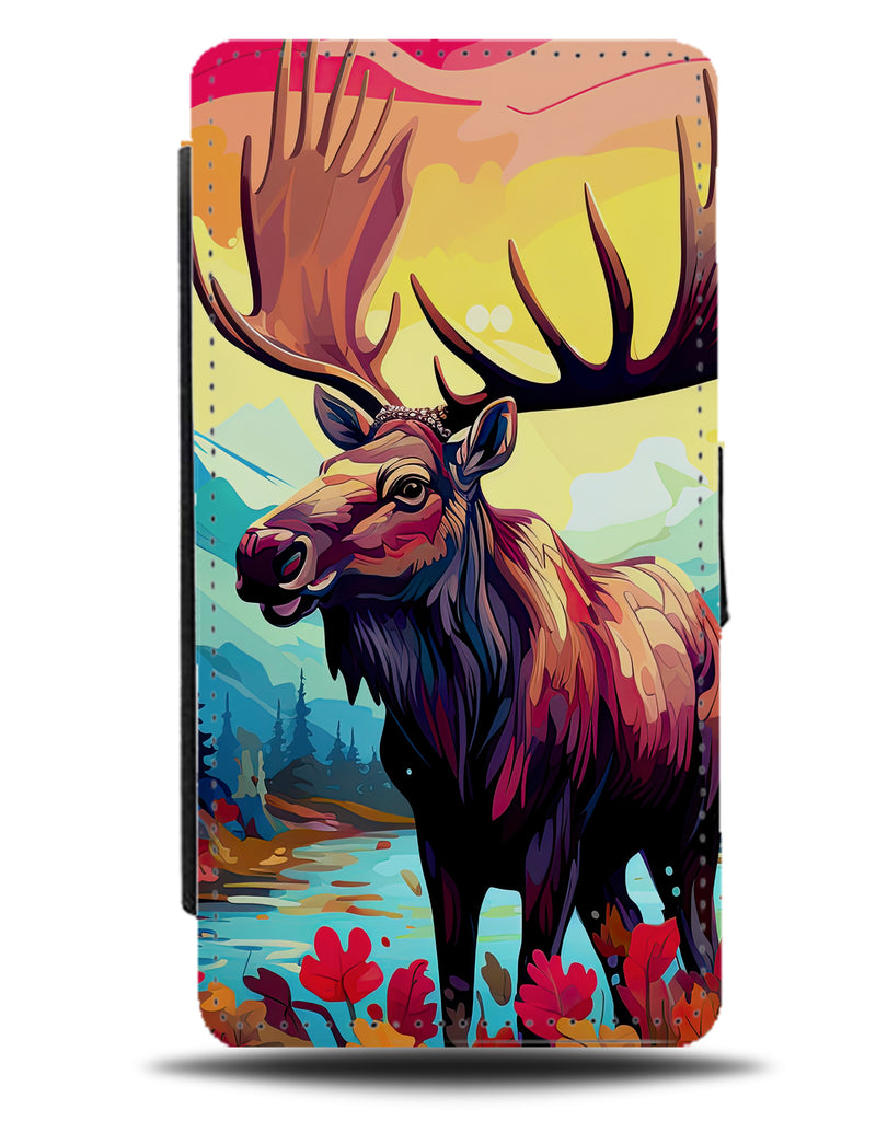Moose Flip Wallet Case Mooses Head Face Colourful Deer Deers Bull bulls DQ69