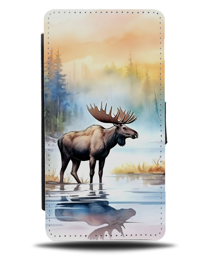 Moose In The Wild Flip Wallet Case Young Mooses Male Watercolour Buck Bucks DQ79