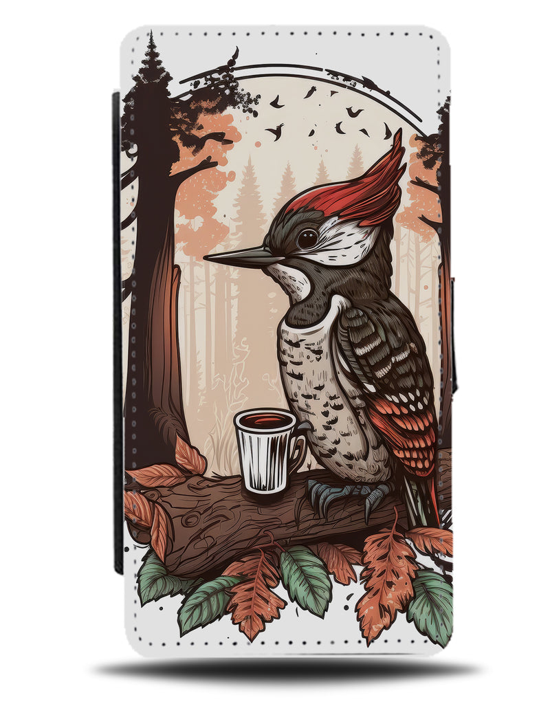 Morning Early Bird With Coffee Flip Wallet Phone Case Birds Wodpecker Coffees Cup BJ92