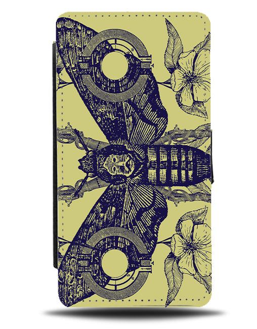 Moth and Flowers Flip Wallet Phone Case Moths Outline Shapes Floral Luna Yellow P120