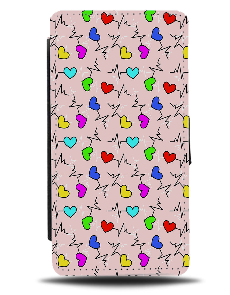Multicoloured Heartbeat Signs Flip Wallet Phone Case Heart Beats Lines Line Funky Q746