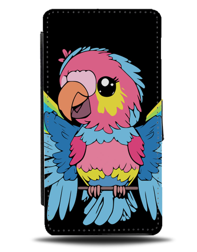 Multicoloured Parrot Cartoon Flip Wallet Phone Case Parrots Macaw Illustration BJ44