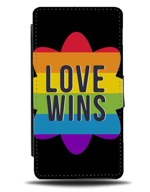 Multicoloured Love Wins Emblem Badge Flip Wallet Phone Case Rainbow Colourful M473