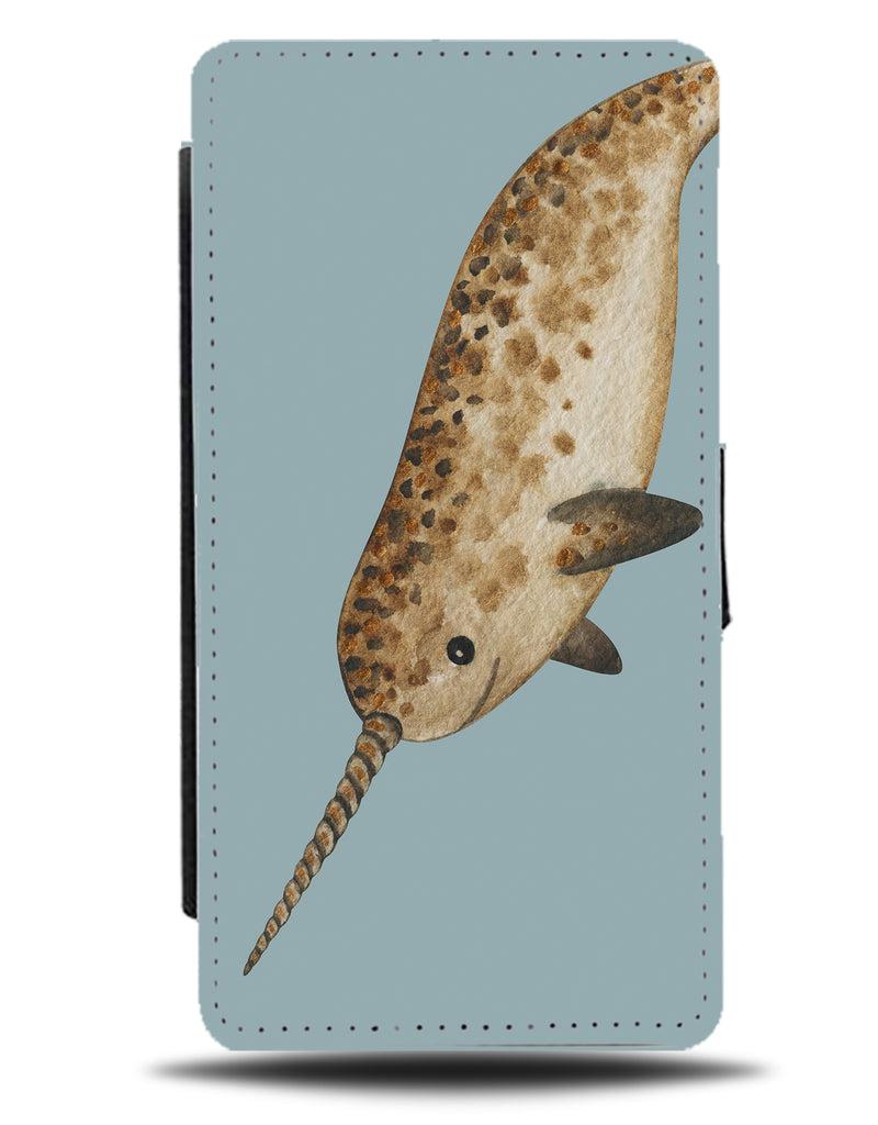 Narwal Flip Wallet Phone Case Narwals Yellow Dolphin Horn River Watercolour Art Q892C