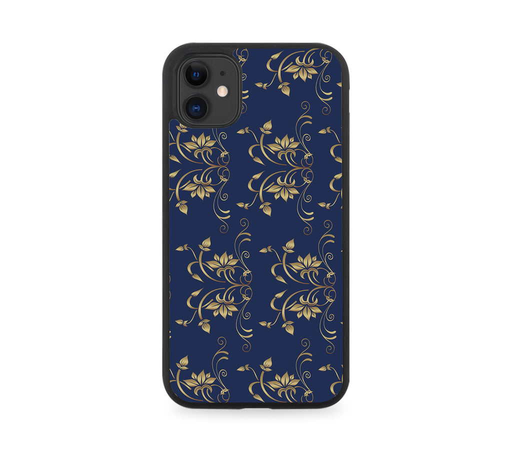 Navy Blue and Gold Floral Pattern Rubber Phone Case Tribal Golden Leaves E585
