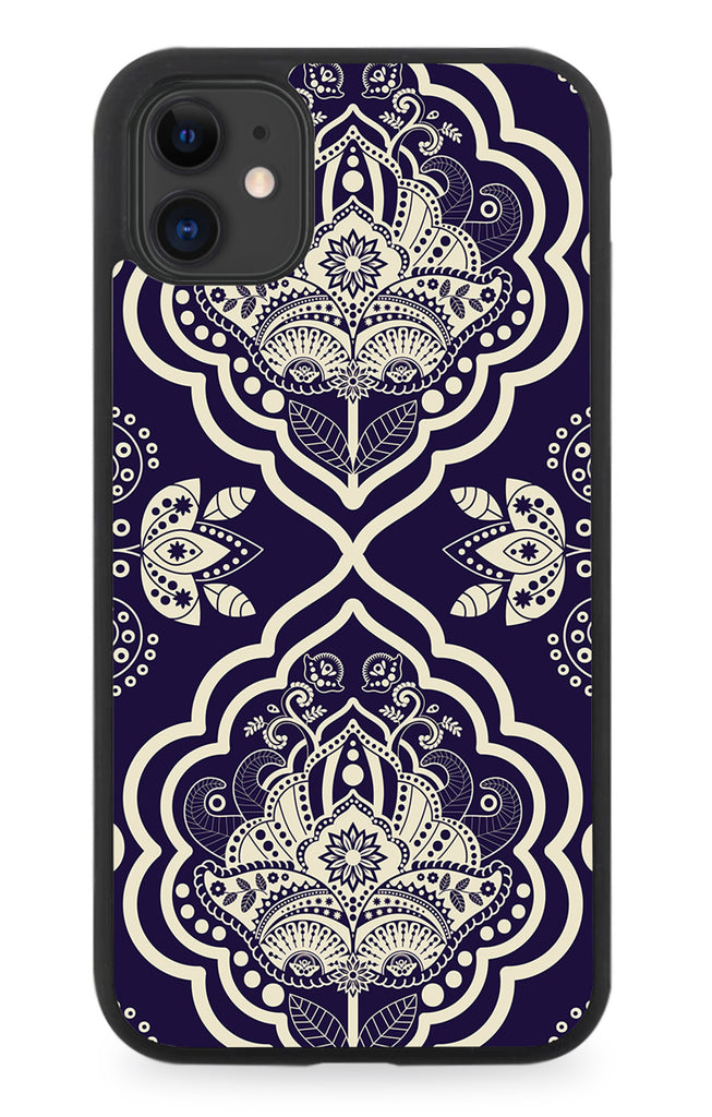 Navy Blue and White Tribal Leaves Rubber Phone Case Cover Indian Stencil Stencils G643