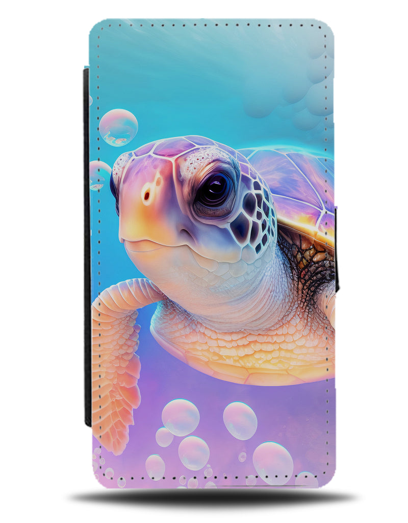 Neon Coloured Sea Turtle Flip Wallet Phone Case Turtles Purple Vibrant Sea Ocean BV38