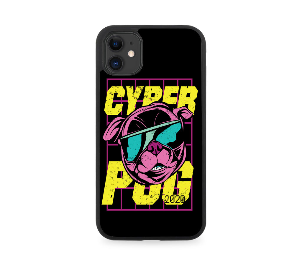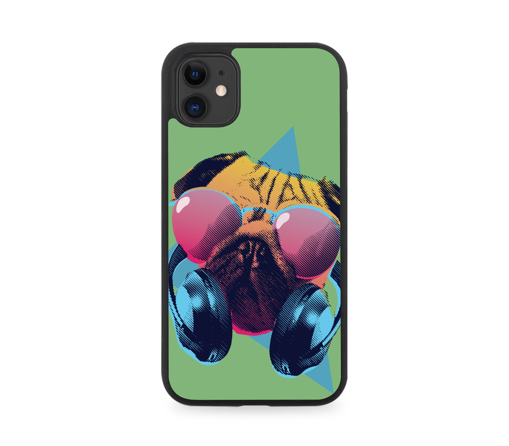 Neon 80s DJ Pug Rubber Phone Case Pugs Retro Vintage Dog Head Headphones K148