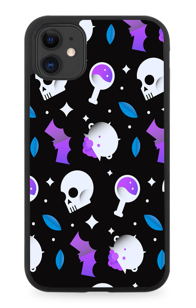 Neon Coloured Skulls and Potions Rubber Phone Case Potion Skull Bat Bats MB04