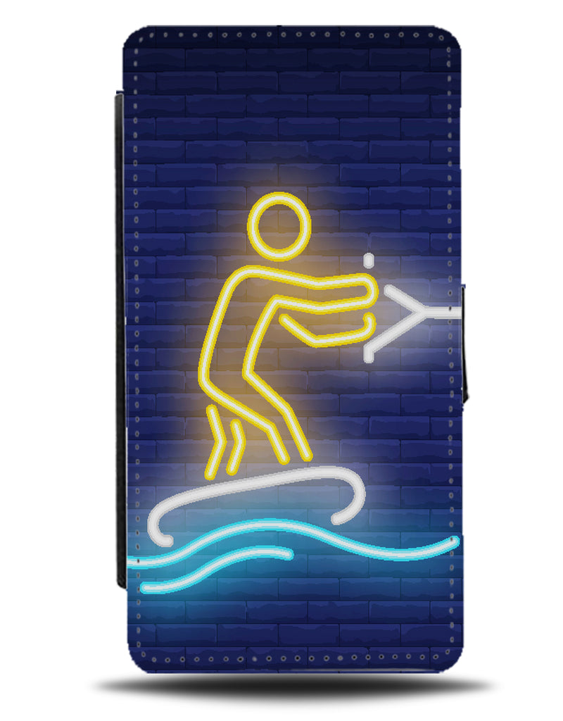 Neon Wakeboard Sign Flip Wallet Case Wake Board Extreme Sport Wakeboarding DN92