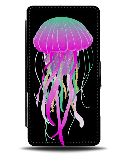 Neon Rainbow Jellyfish Flip Wallet Phone Case Jelly Fish Multicoloured Tails M267