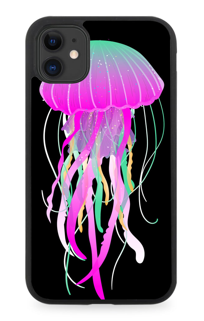 Neon Rainbow Jellyfish Rubber Phone Case Jelly Fish Multicoloured Tails M267