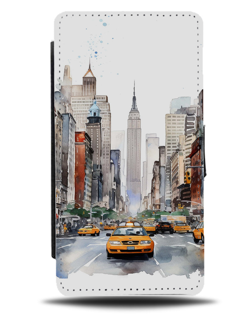 New York City Painting Design Flip Wallet Case Cities Yellow Taxi Cab Cabs DM77