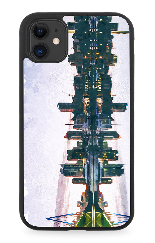 New York City Skyline Oil Painting Print Rubber Phone Case Foggy Fog Sky Line Q93