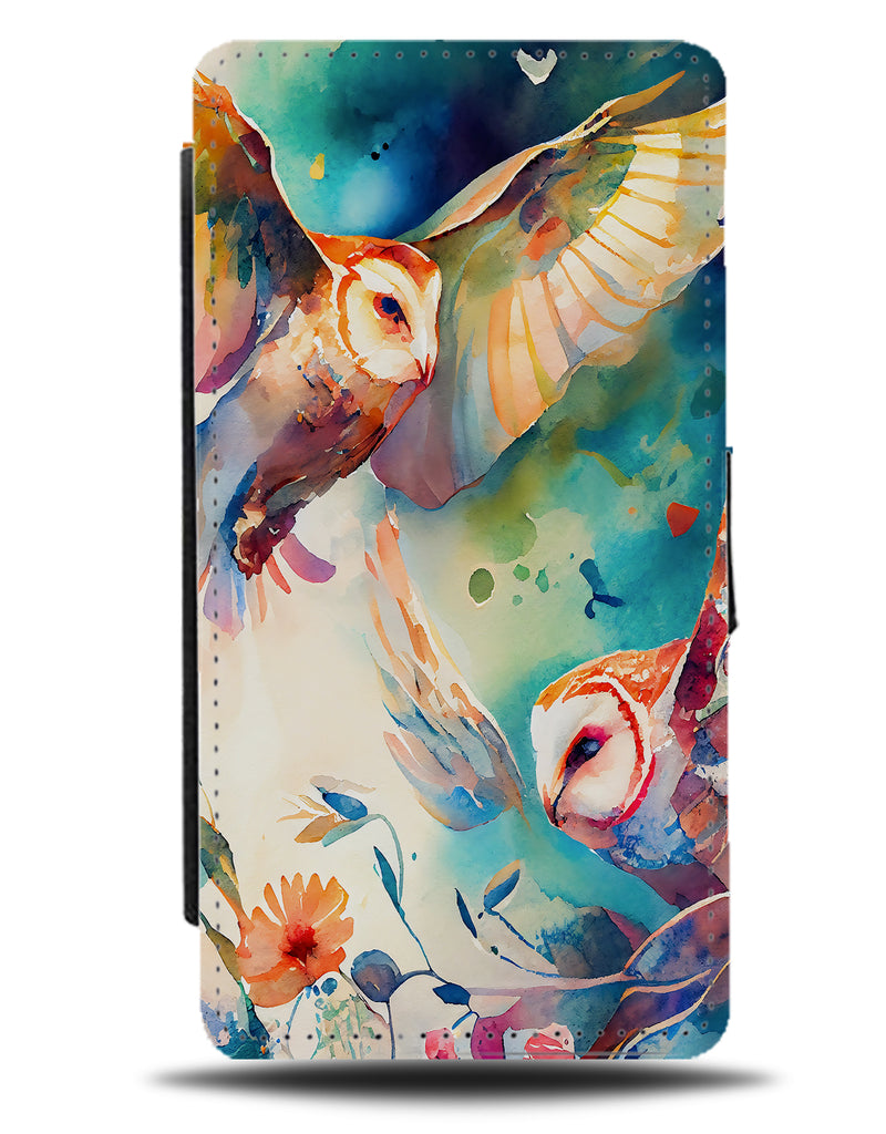 Oil Painting Flying Owls Flip Wallet Phone Case Owl Barn Barns White Wizards Pic BR41