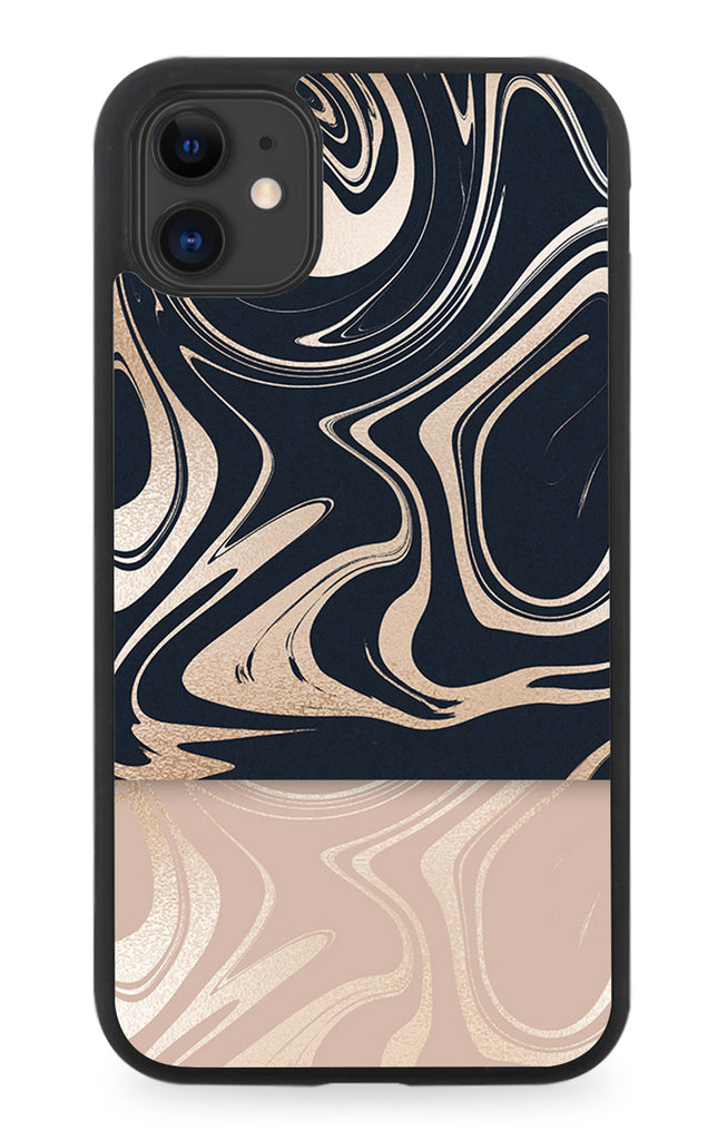 Black & Rose Gold Whirls Rubber Phone Case Cover Swirly Lines Hypnotic Print And G108