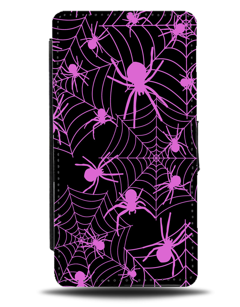 Black and Hot Pink Spiders Web Flip Wallet Phone Case Girls Female Spiders Bugs BT66