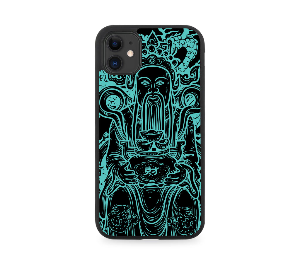 Black and Neon Green Buddha Picture Rubber Phone Case Japan Meditating E339