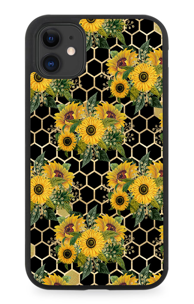 Black and Golden Stencilling Sunflower Pattern Rubber Phone Case Cover Print Gold G248