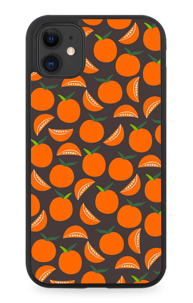 Black and Orange Fruit Pattern Rubber Phone Case Cover Oranges Retro Style 60s F074