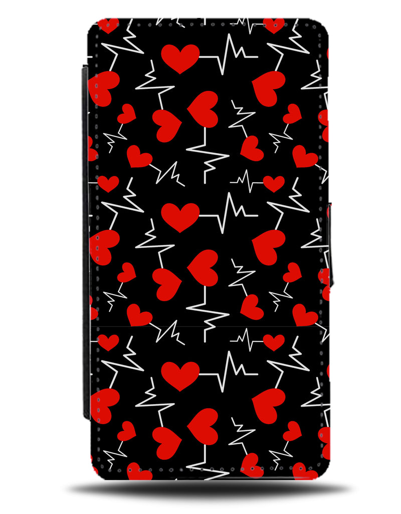 Black and Red Heartbeat Symbol Flip Wallet Phone Case Symbols Pattern Heart Beat Q823