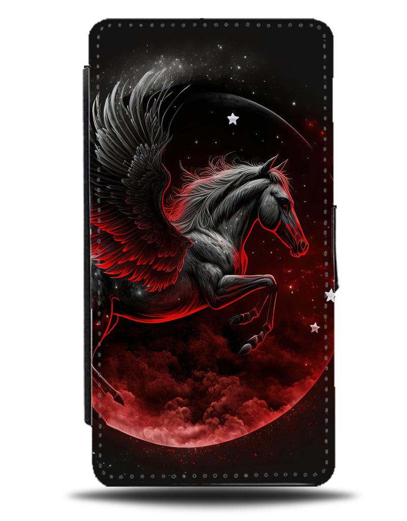 Black and Red Pegasus Horse Flip Wallet Phone Case Pegasus's Wings Flying Sky Q826B