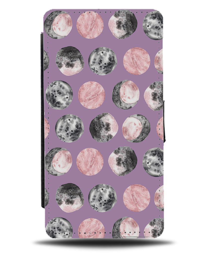 Black and Pink Watercolour Moons Flip Wallet Phone Case Moon Circles Polka Dot Q898B