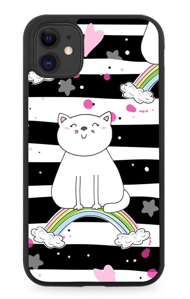 Black and White Retro Striped Cat Design Rubber Phone Case Cover Picture Rainbow F239