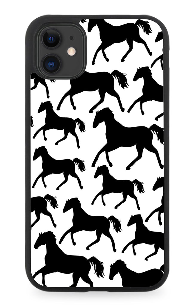 Black and White Rubber Phone Case Cover Horses Shapes Outlines Shadow Shadows G324