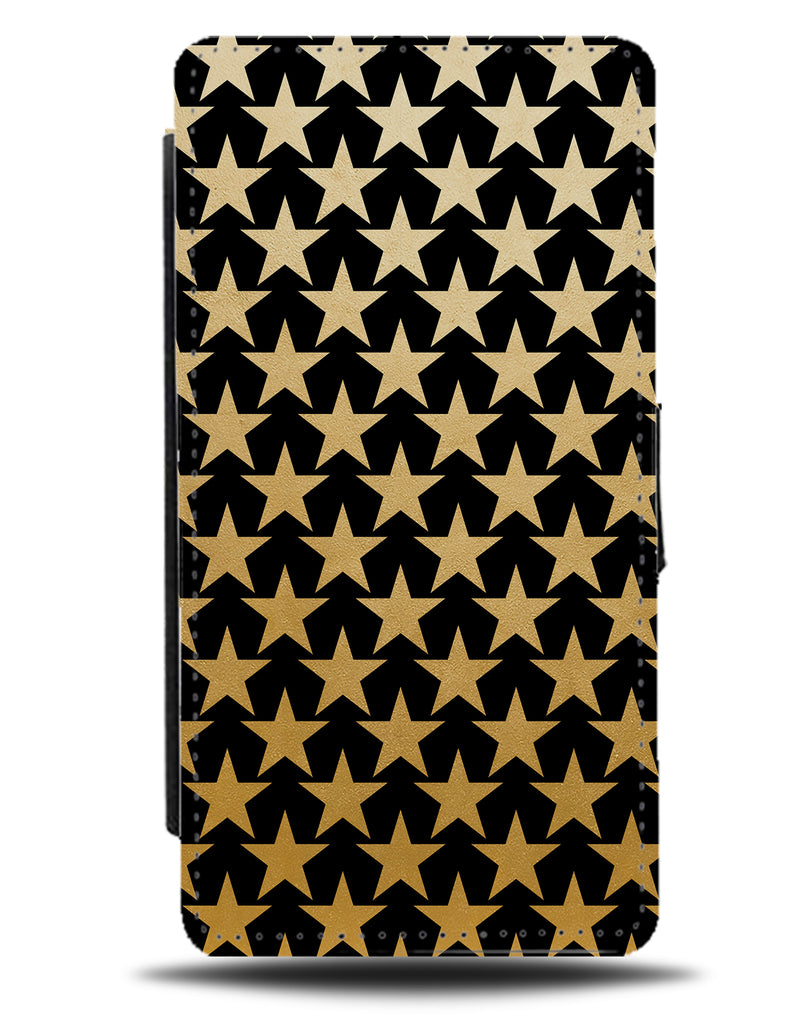 Black Flip Wallet Phone Case With Golden Stars Star Shape Shapes Gold Stylish Q699J